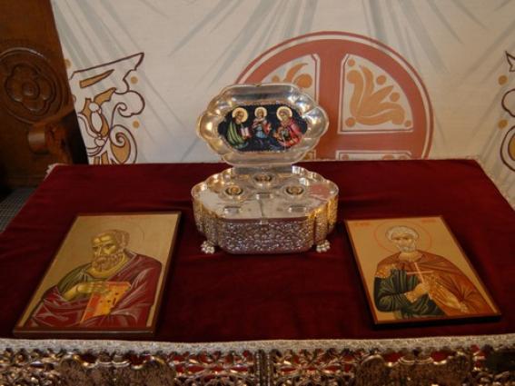 Sfintele Moaste de la manastire sunt asezate in racla de argint: o particica de la Sfantul Mina si de la Sf. Mucenita Chiriachi.